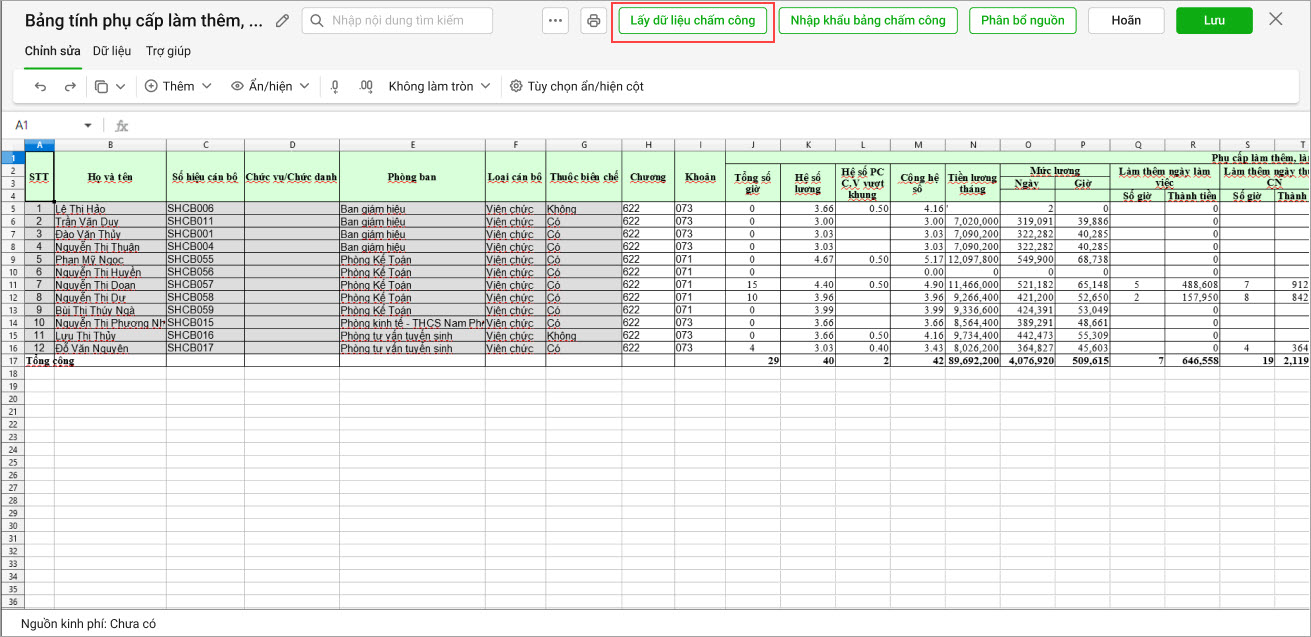 Giúp kế toán tận dụng số liệu chấm công từ iHOS Tiền lương để tính lương và phụ cấp hàng tháng cho cán bộ nhân viên (CBNV).