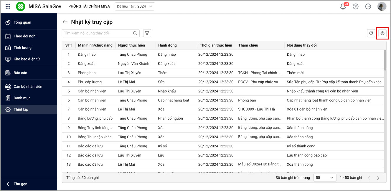 1. Vào menu Thiết lập\Nhật ký truy cập