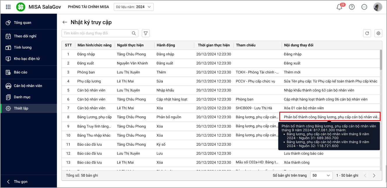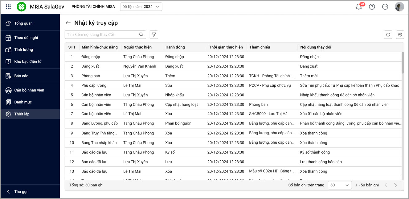 2. Phần mềm sẽ hiển thị nhật ký truy cập của các tài khoản được cấp quyền trong đơn vị