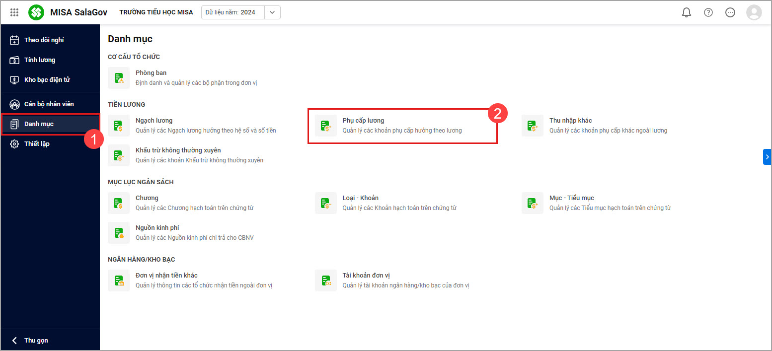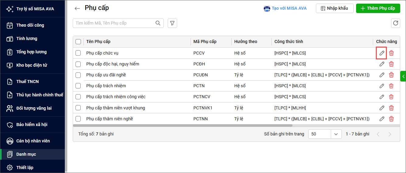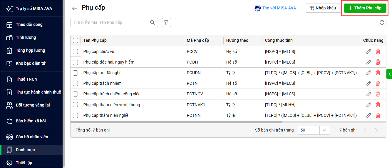 Bước 1: Vào Danh mục\Phụ cấp lương.