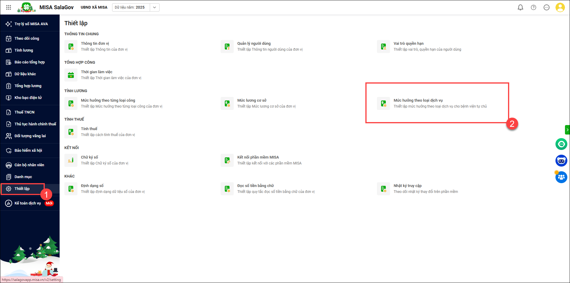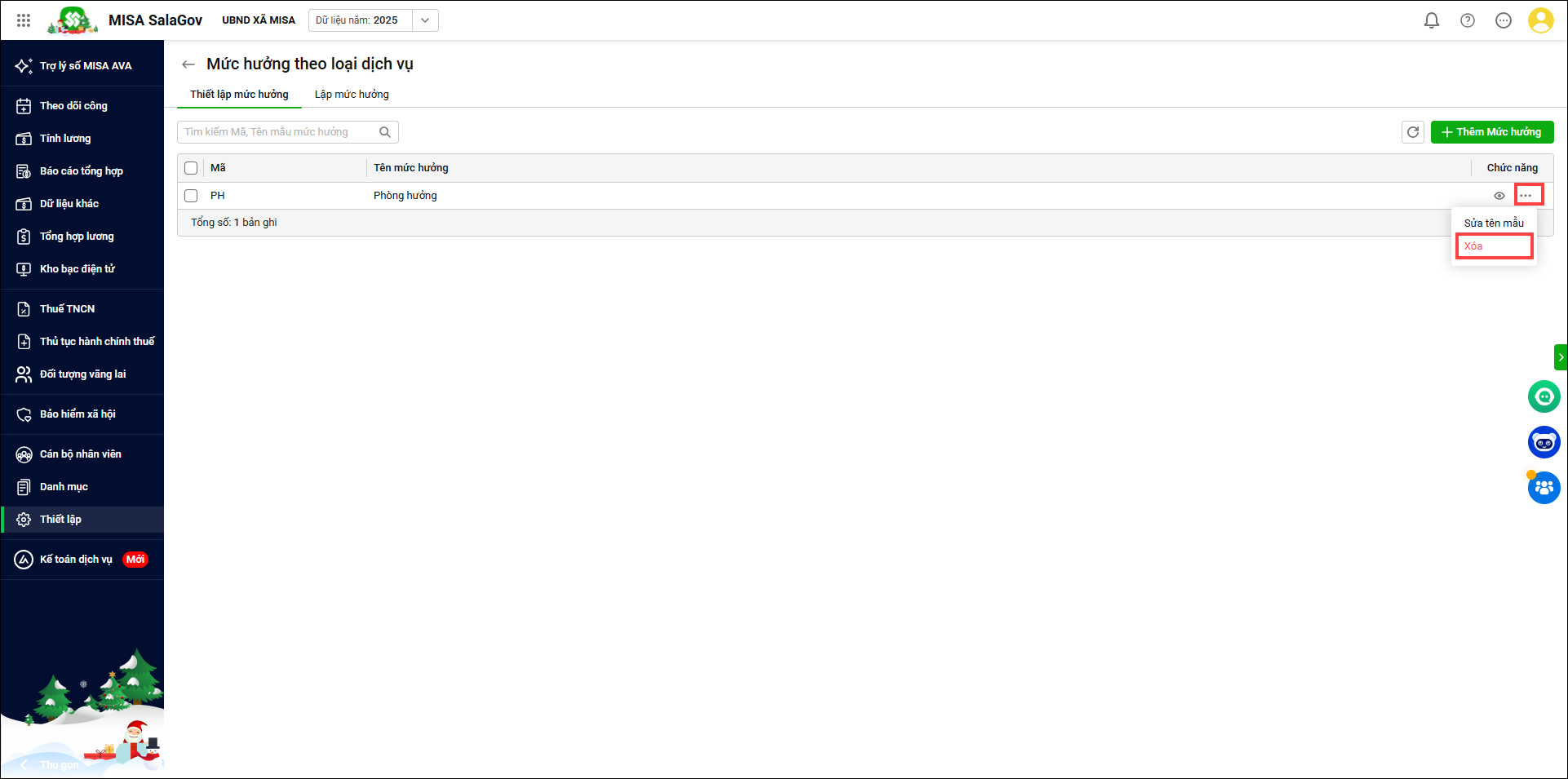 - Vào Thiết lập/Mức hưởng theo loại dịch vụ