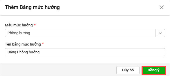 2. Nhập tên Mẫu mức hưởng, tên bảng mức hưởng sau đó nhấn Đồng ý