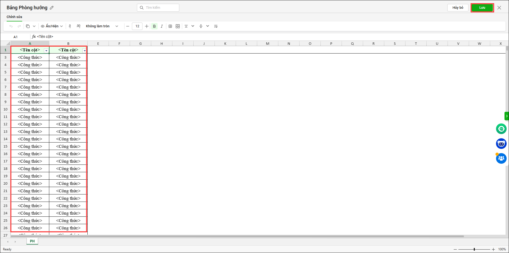 3. Phần mềm hiển thị bảng hưởng, anh/chị có thể sửa lại tên cột/hàng, công thức hưởng tại file này. Sau đó nhấn Lưu.