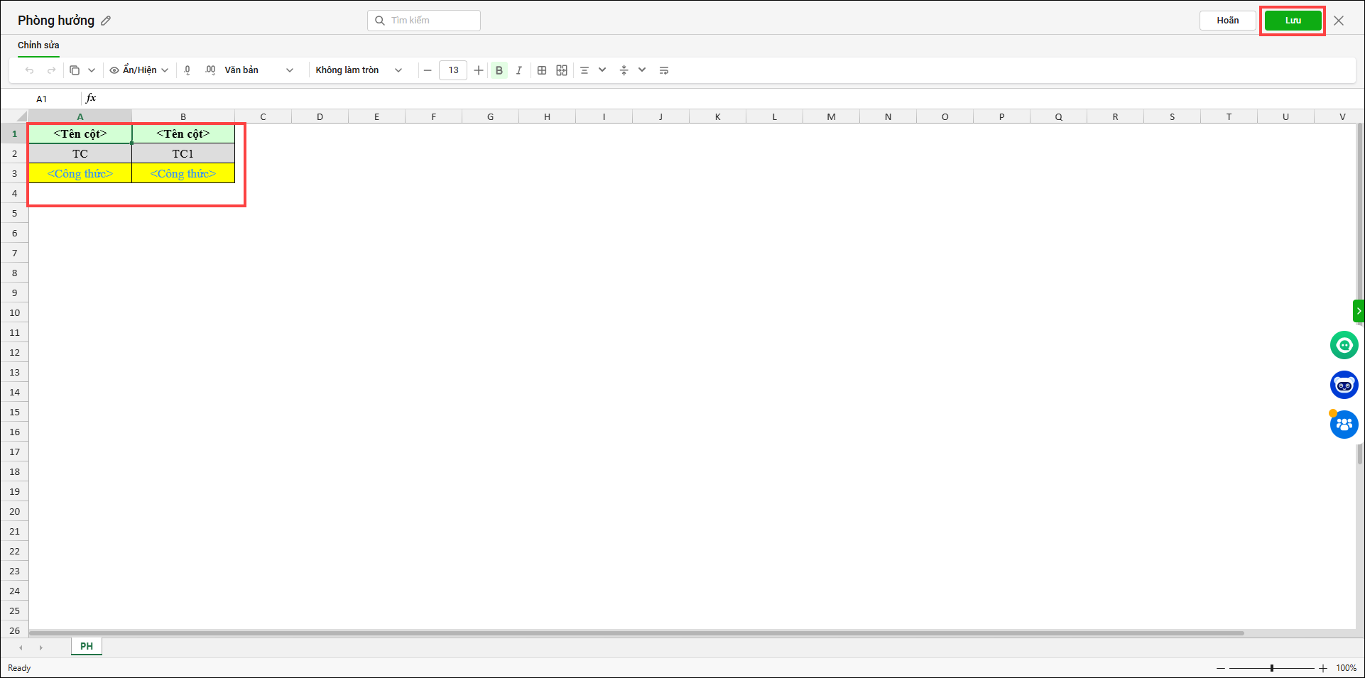 5. Phần mềm hiển thị bảng hưởng, anh/chị có thể sửa lại tên cột/hàng, công thức hưởng tại file này. Sau đó nhấn Lưu.